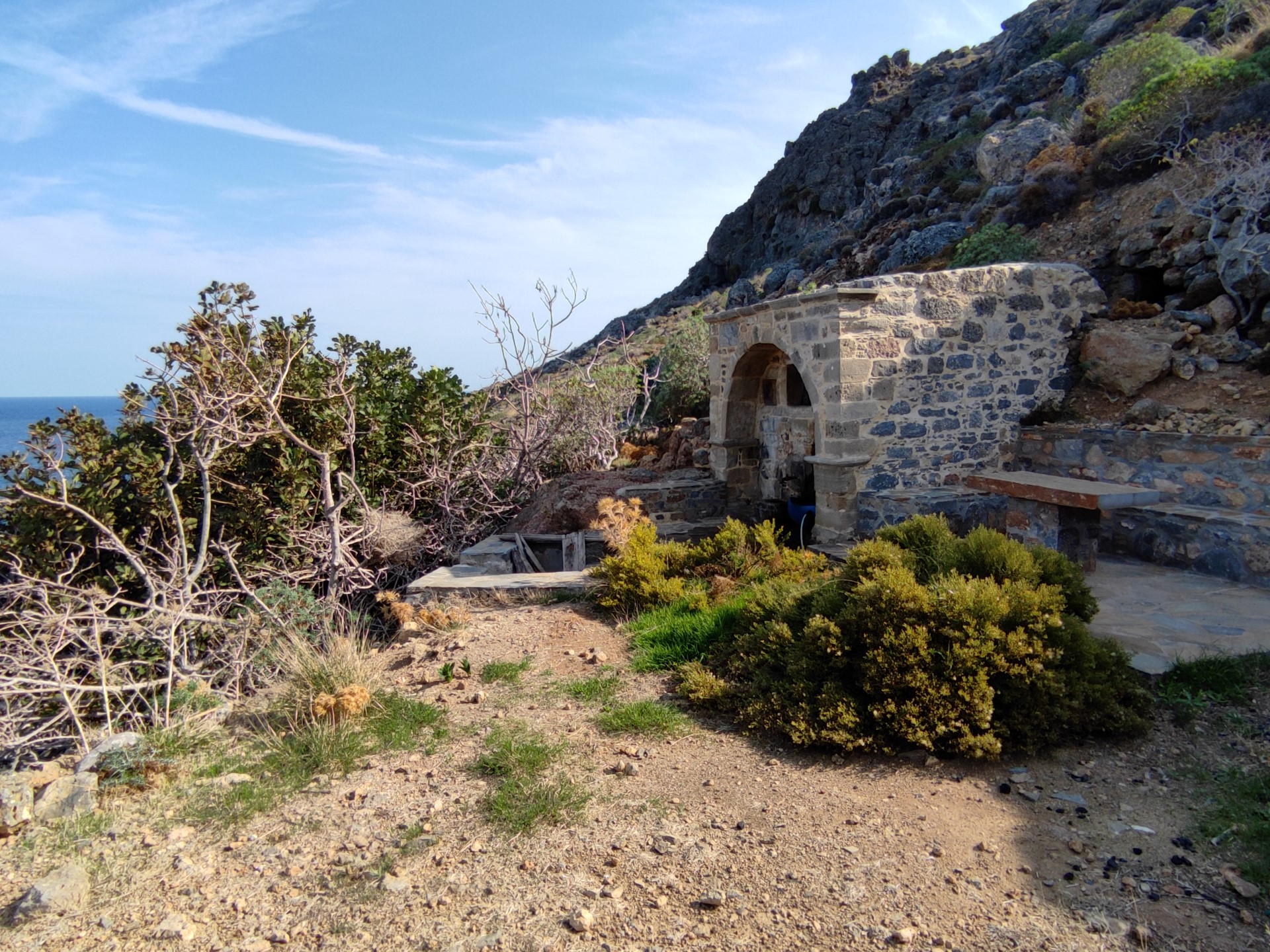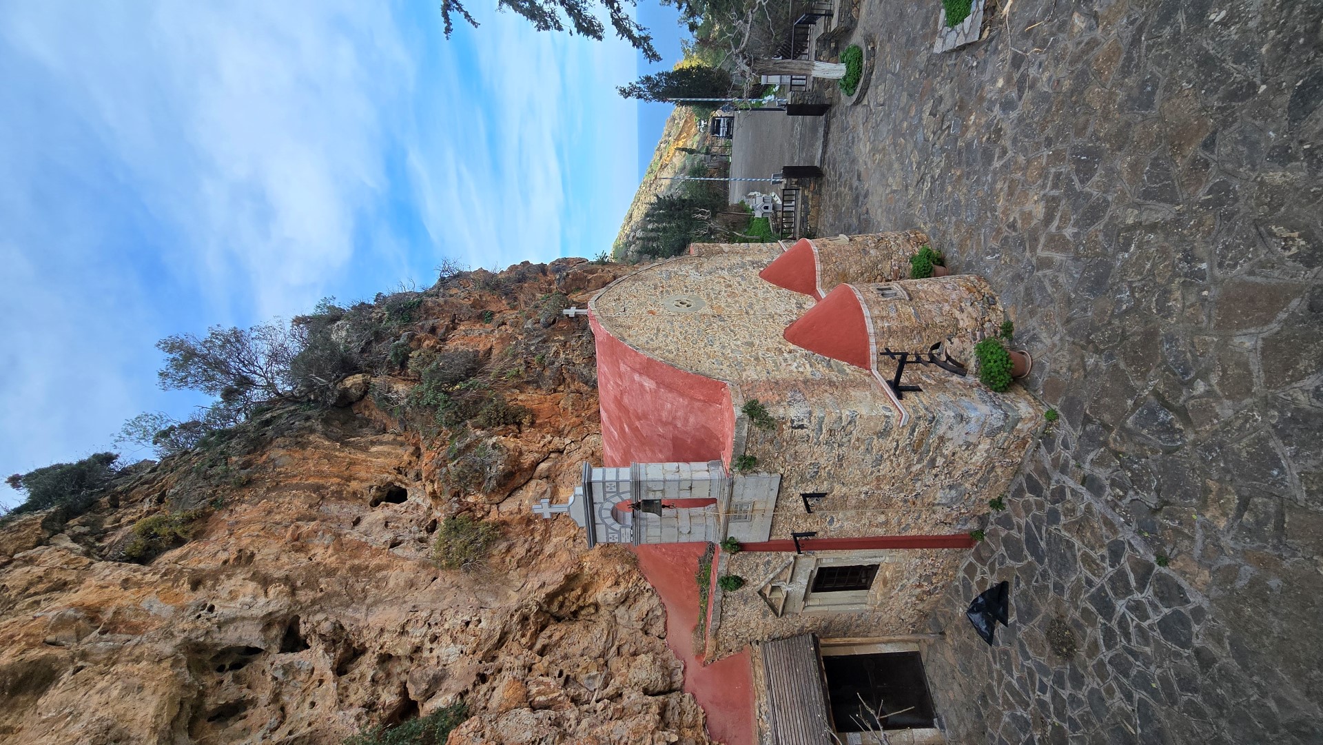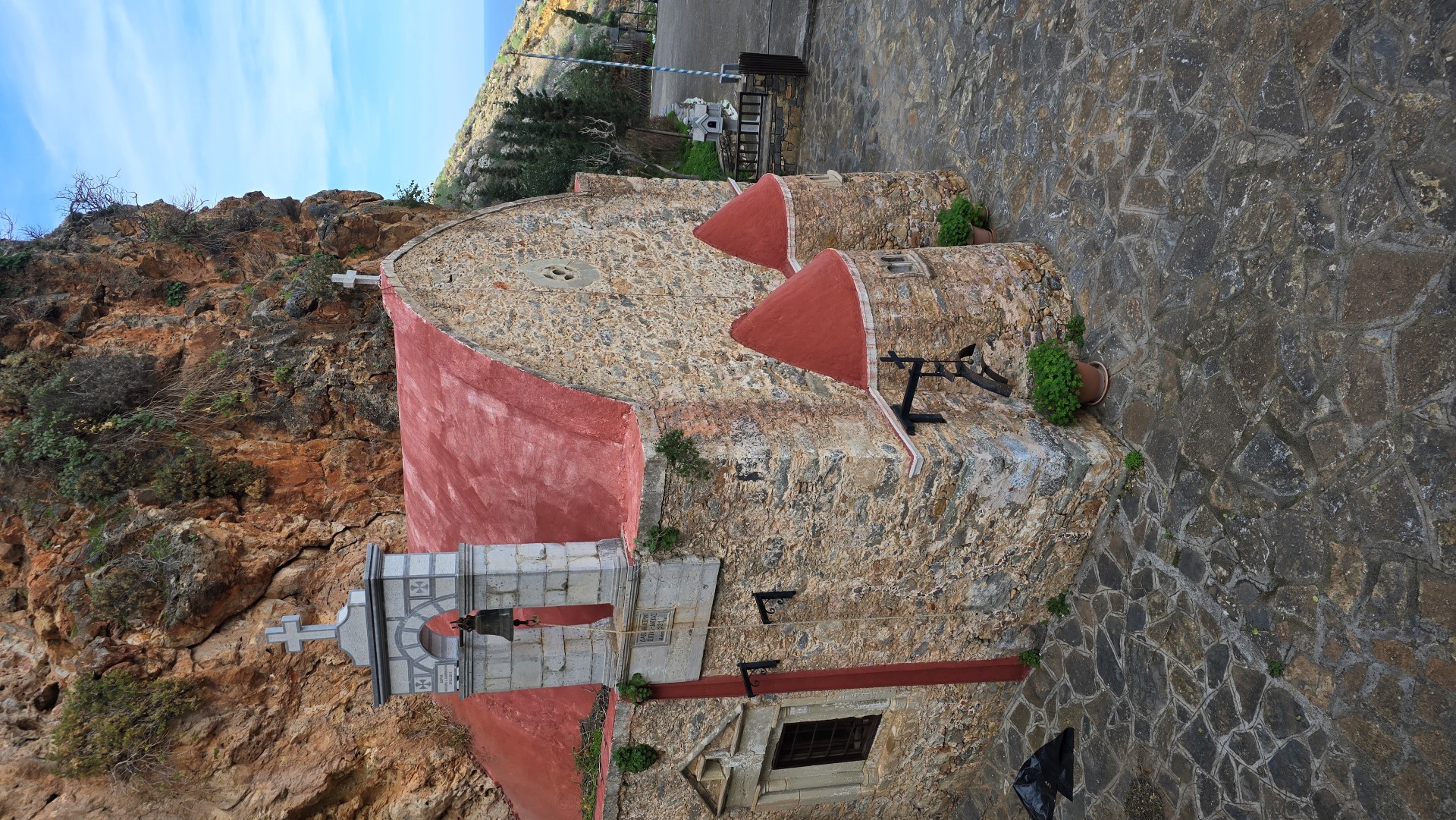There are some cells for hermits around the temple and the steeple of the church bears the inscription "Donated by Spinalonga lepers". Nearby, there is the grave of Ioannis Lambrakis, the restorer of the church in 1850.
