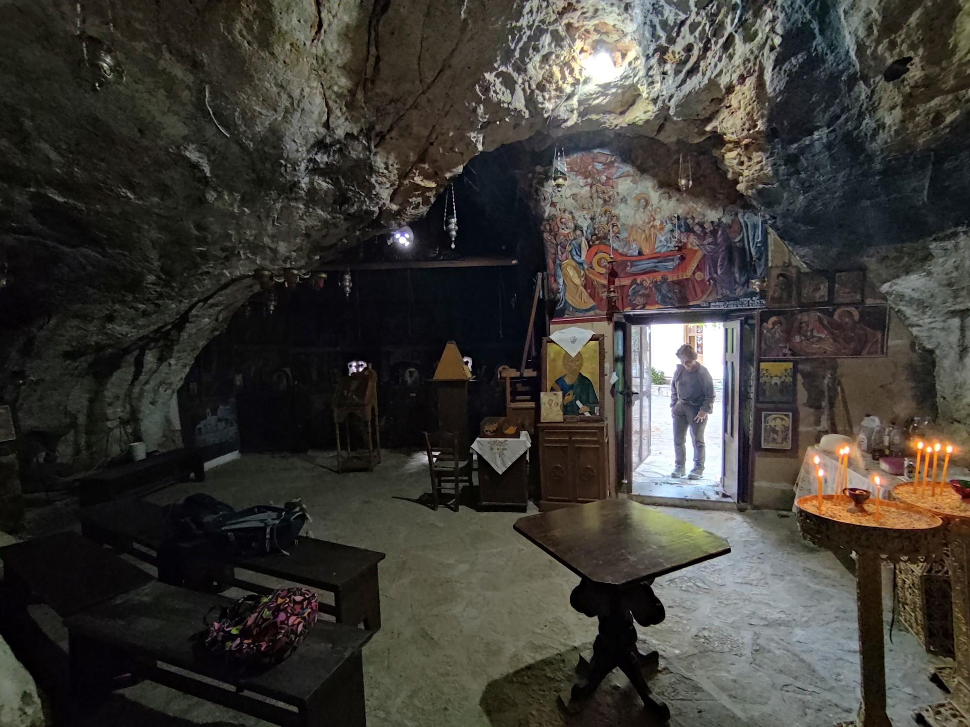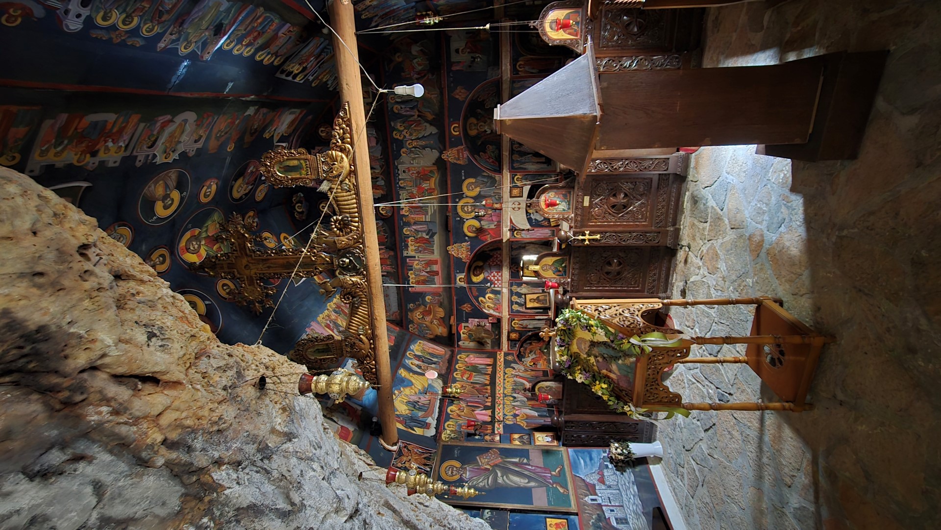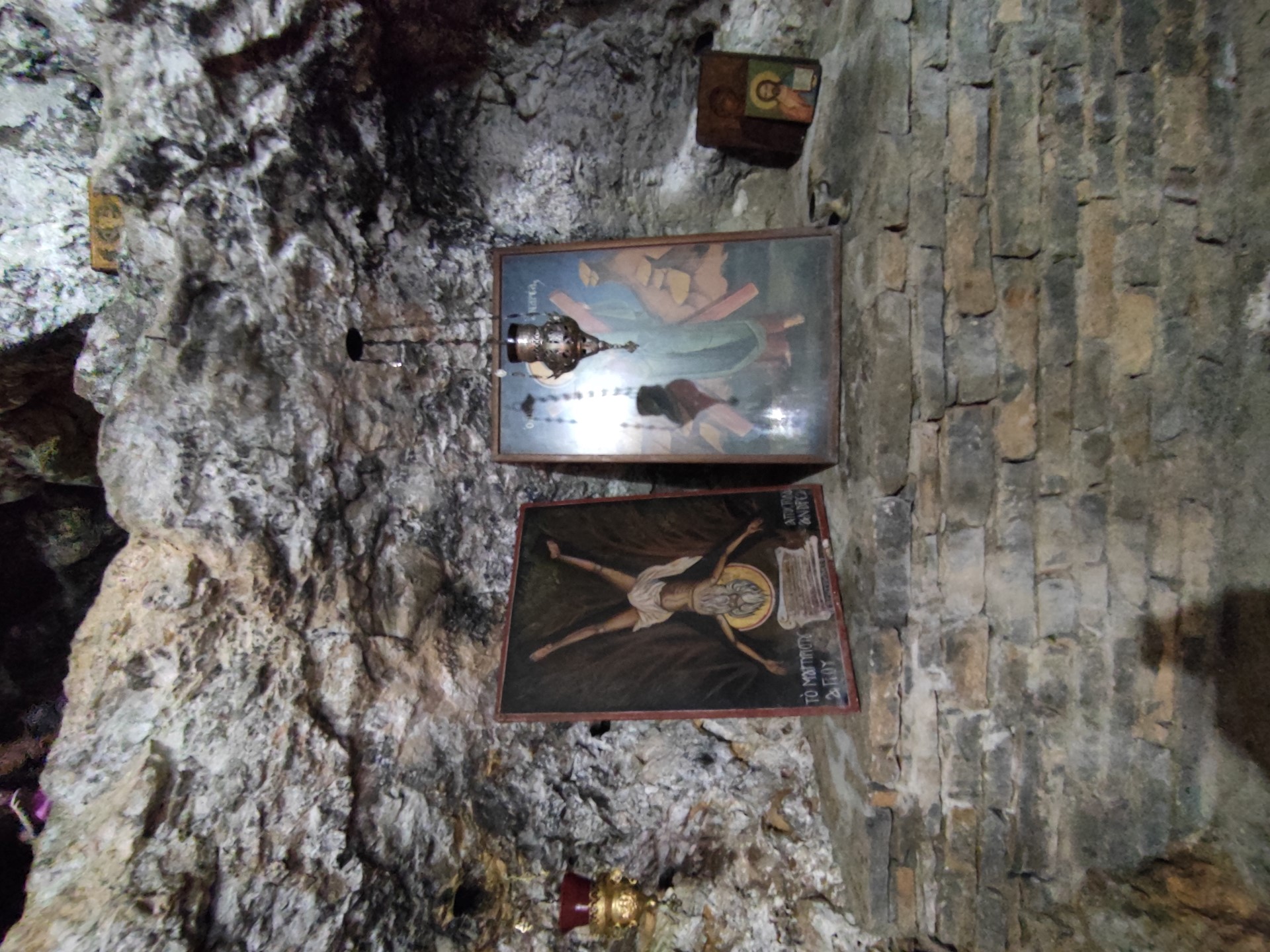 The church of St. Andrew's is built inside the rock and is surrounded by a small grove of pine trees. According to the legend, once a shepherd found the icon of Saint Andrew in the cave where the current temple is built and decided to build the church around the cave. Inside the cave, water flows from a crack and is used as holy water.