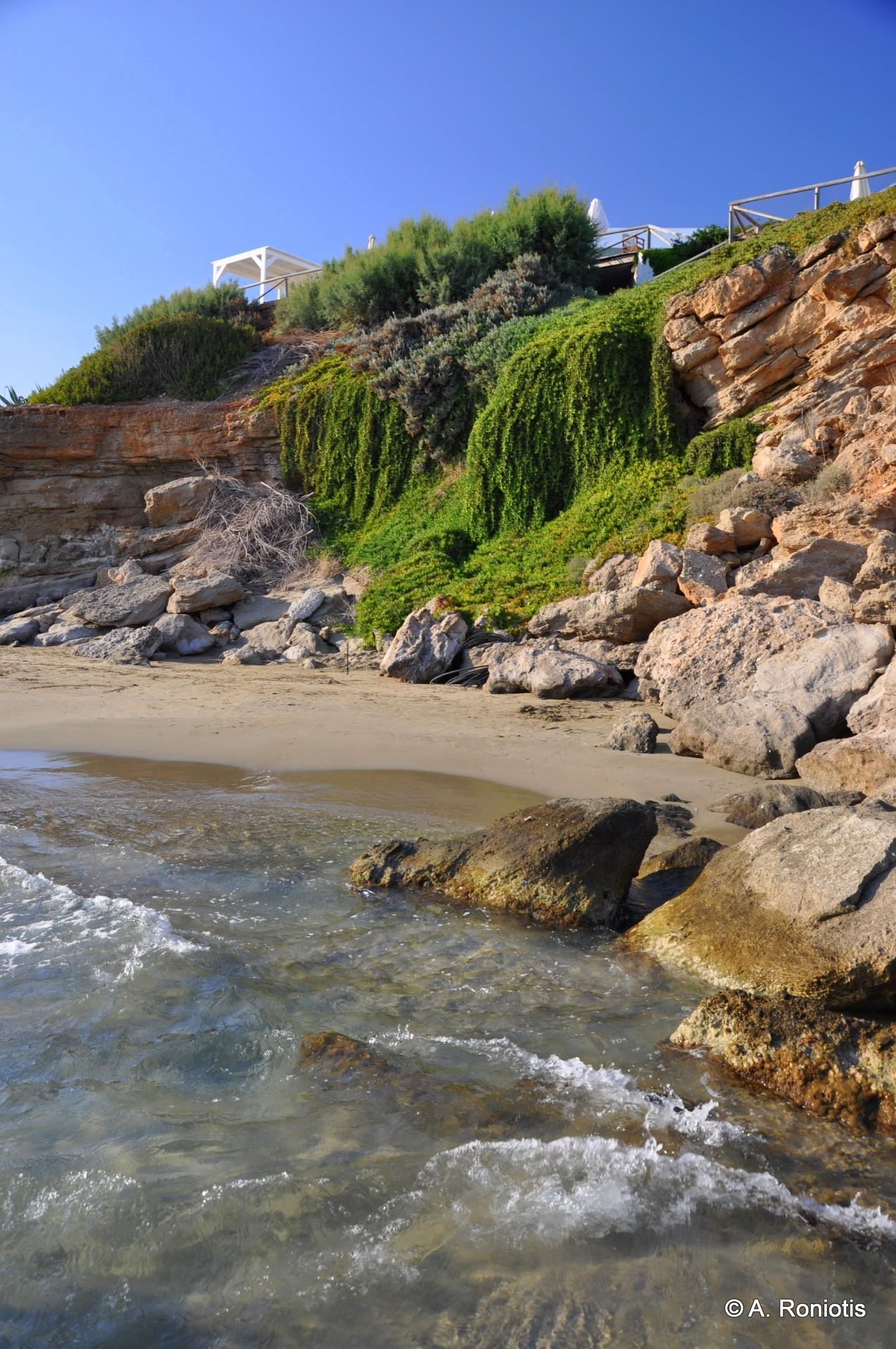 The main beach of Analipsi is known as Hani or Megali Paralia. It is a relatively narrow strip of beach with fine sand, surrounded by many cafes, taverns, while in many places there are large tamarisk trees. It is very well organized with umbrellas, water sports, showers, etc. The waters are very shallow and calm, making it ideal for families with small children.