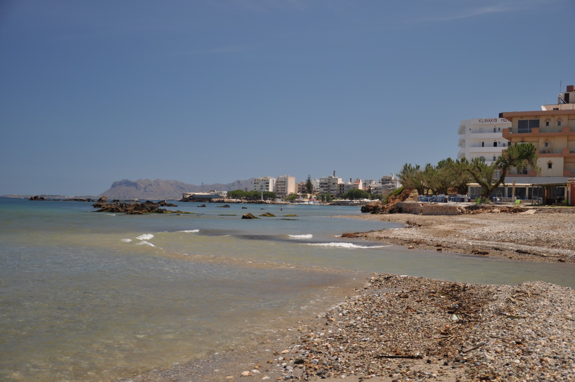 Due to the existence of the wetland at the mouth of the Kladissos and the protection regime, the beach is poorly organized. It is a good choice for those who want to be isolated while being essentially in the city of Chania. In the middle of the beach there are some rocks that separate it from the also beautiful beach of Aptera.