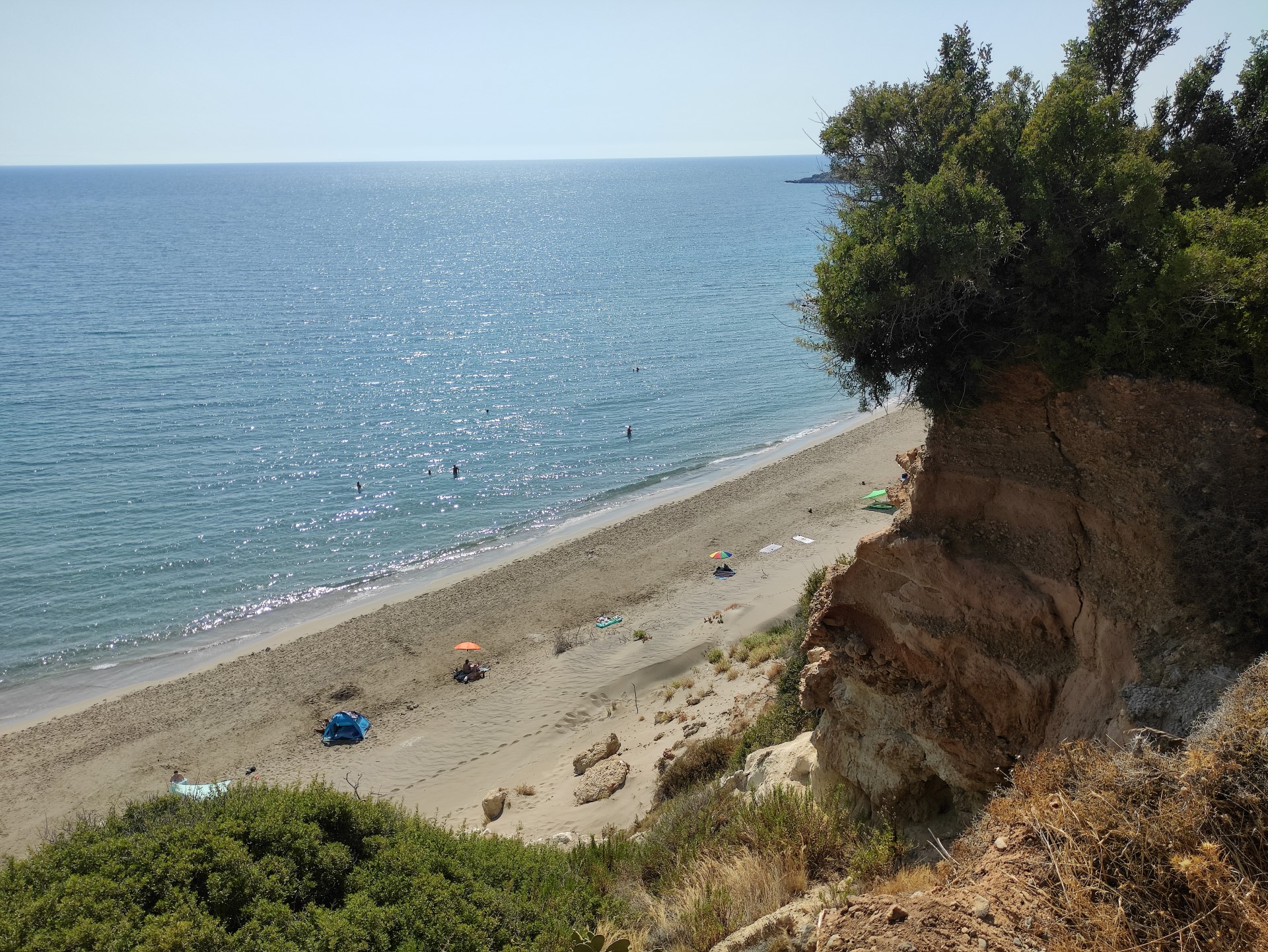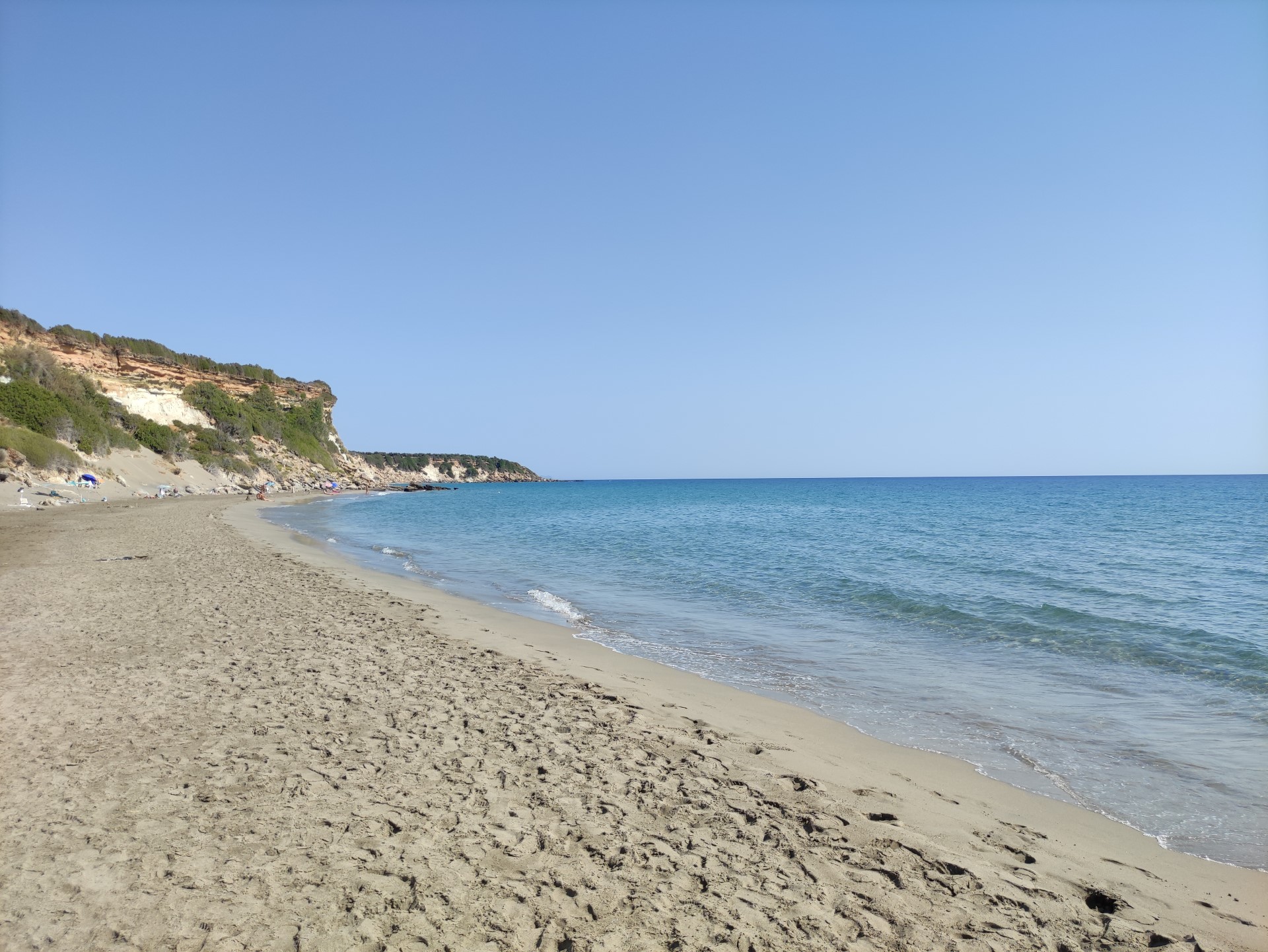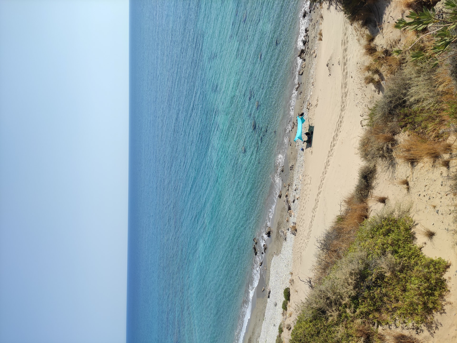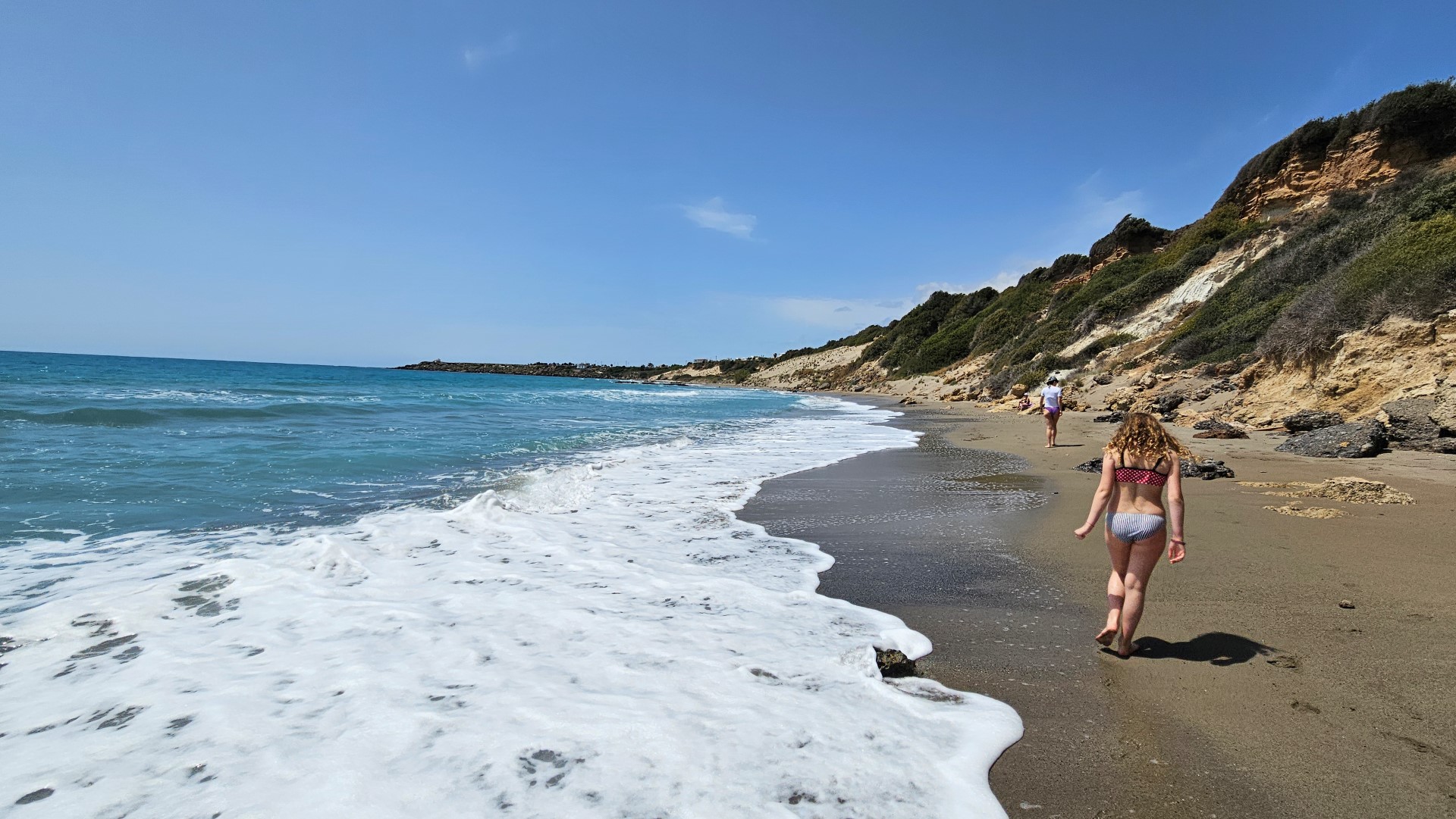 The beach is quiet, in comparison to Frangokastelo that is directly next to it. However, there are a very few accommodation and food amenities, but no sunbeds and water sport services. It's easternmost part is called Kritama and is characterized by high cliffs and turquise water.